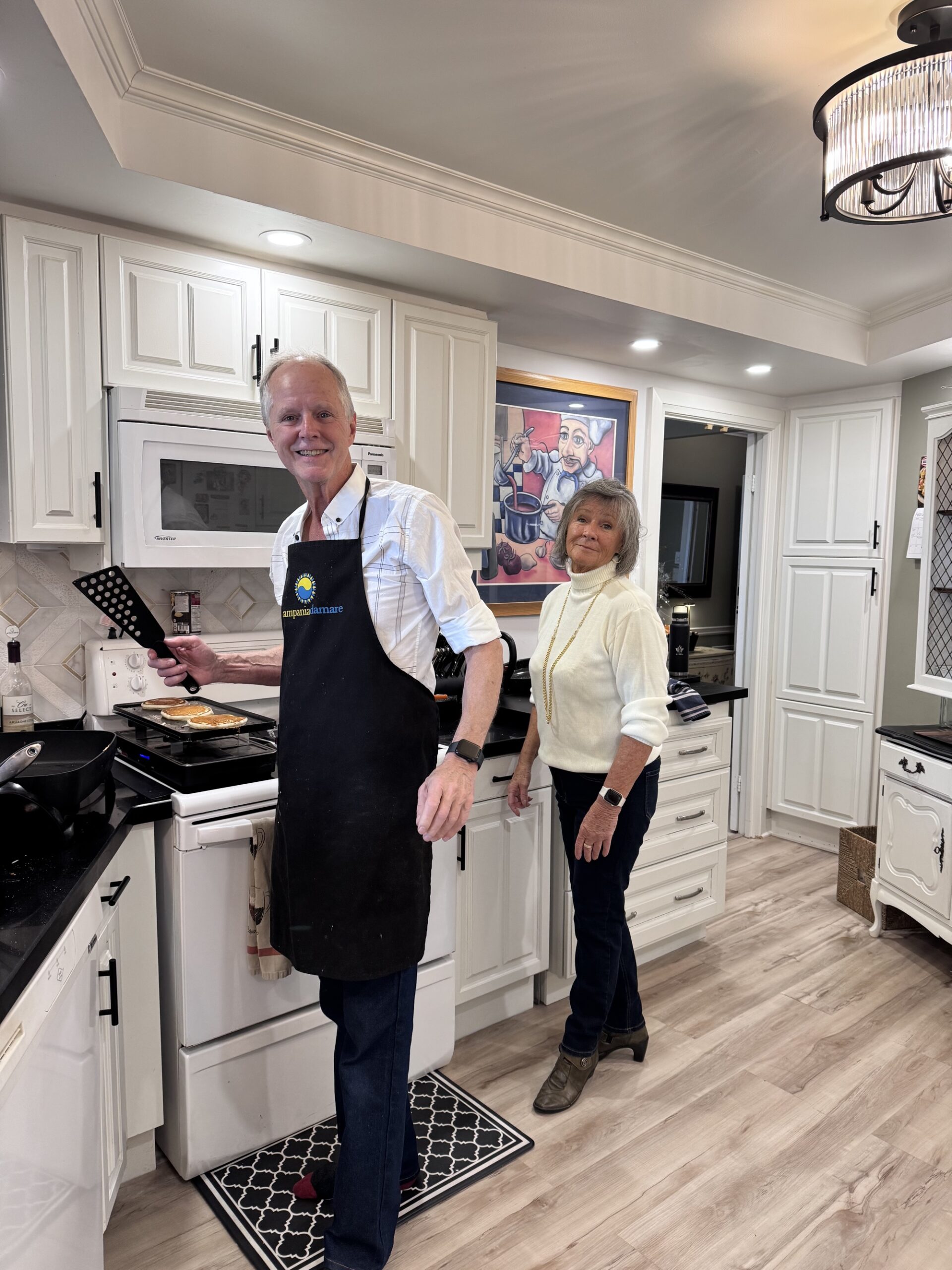 When it is Pancake Tuesday and the Recreation Centre has been locked down for the past two weeks because of a flood, what are you supposed to do? If you are lucky, you may have good neighbours who offer to open their home for breakfast, and serve up the festive pancakes and coffee. Thank you to Lorraine and Tom for your gracious hospitality and for organizing the whole thing on short notice.