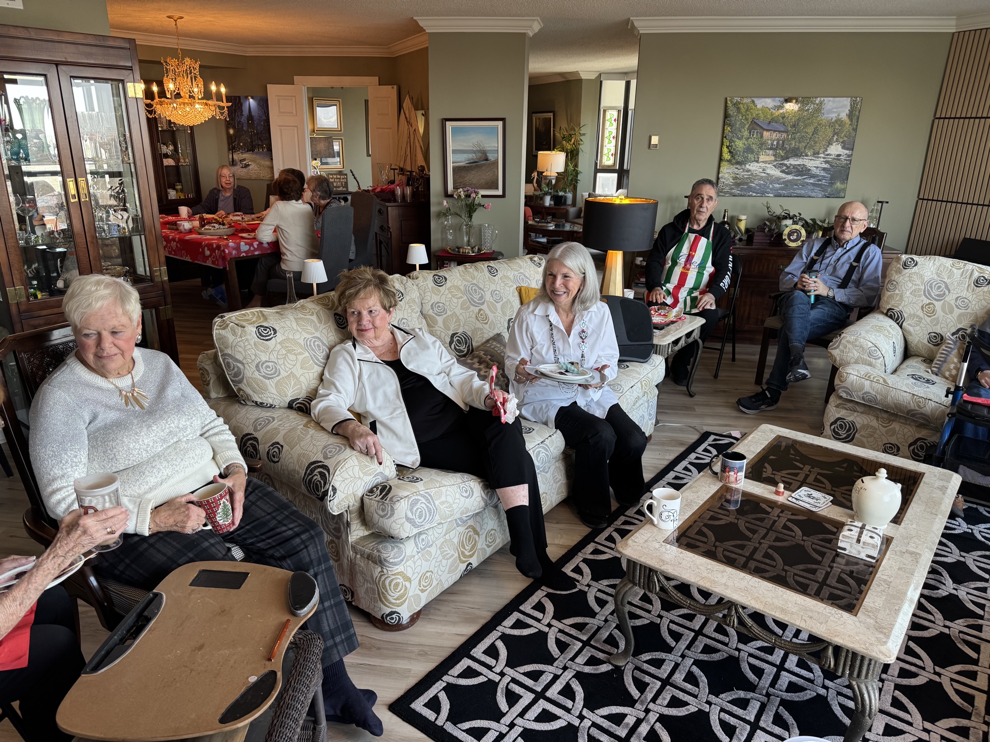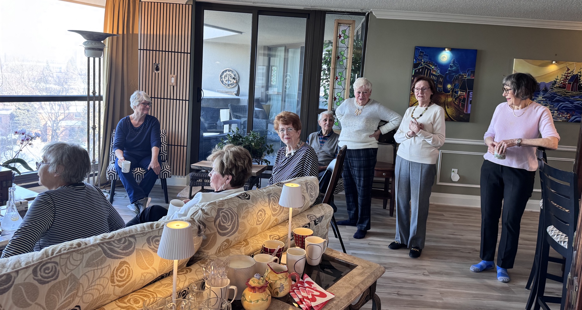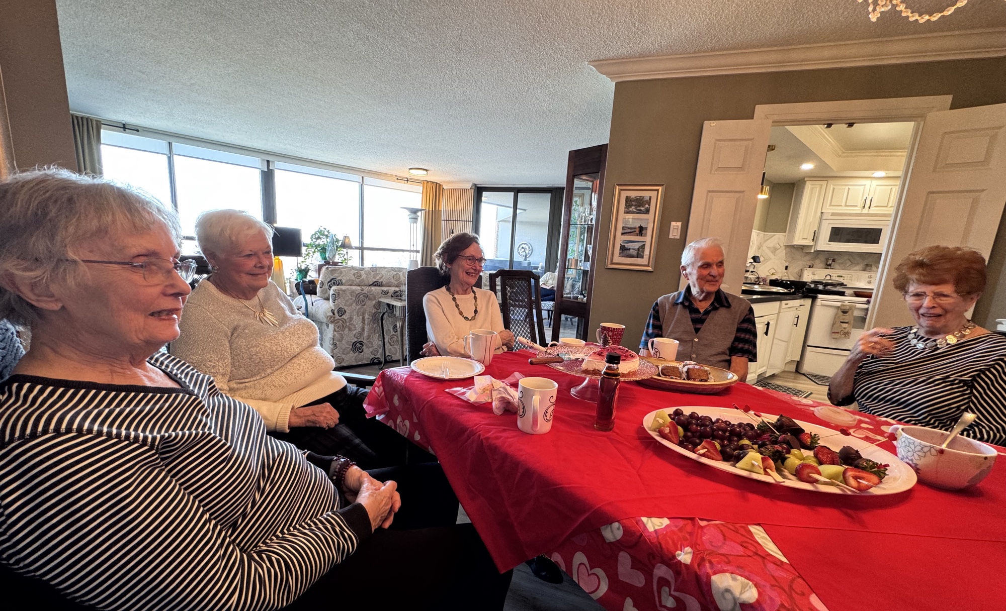 During the pandemic lockdown, residents began a routine of meeting in good weather out on the fountain deck on Friday afternoons for “Happy Hour”. Participants brought their own drinks and sat a safe distance apart. As happy hour became more popular, some brought a folding chair to supplement the seating on the deck. Now that we can gather indoors the group meets in the party room on raining Fridays and all through the winter months – but we still head out to the deck in good weather. This casual party is come as you are, bring your own drink and don’t wait to be invited. Everyone is welcome!